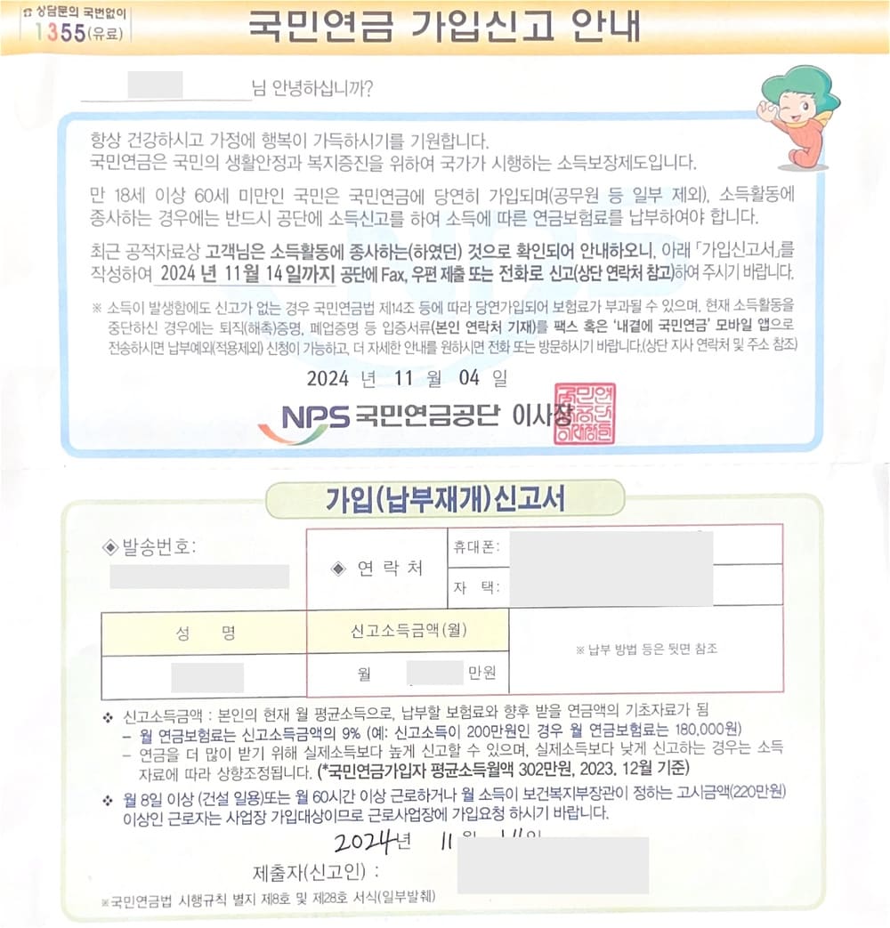 어느 날 국민연금이 가입하라는 신청서가 날아왔습니다. 소득활동에 종사하는 것으로 확인되니 국민연금에 가입하라는 내용이었는데요. 본 포스팅은 이전 포스팅인 프리랜서 및 개인사업자, 국민연금 가입을 안 할 수는 없을까요? 에 이어지는 내용이니 국민연금 가입에 대한 자세한 내용은 아래 포스팅을 참고해 주세요.