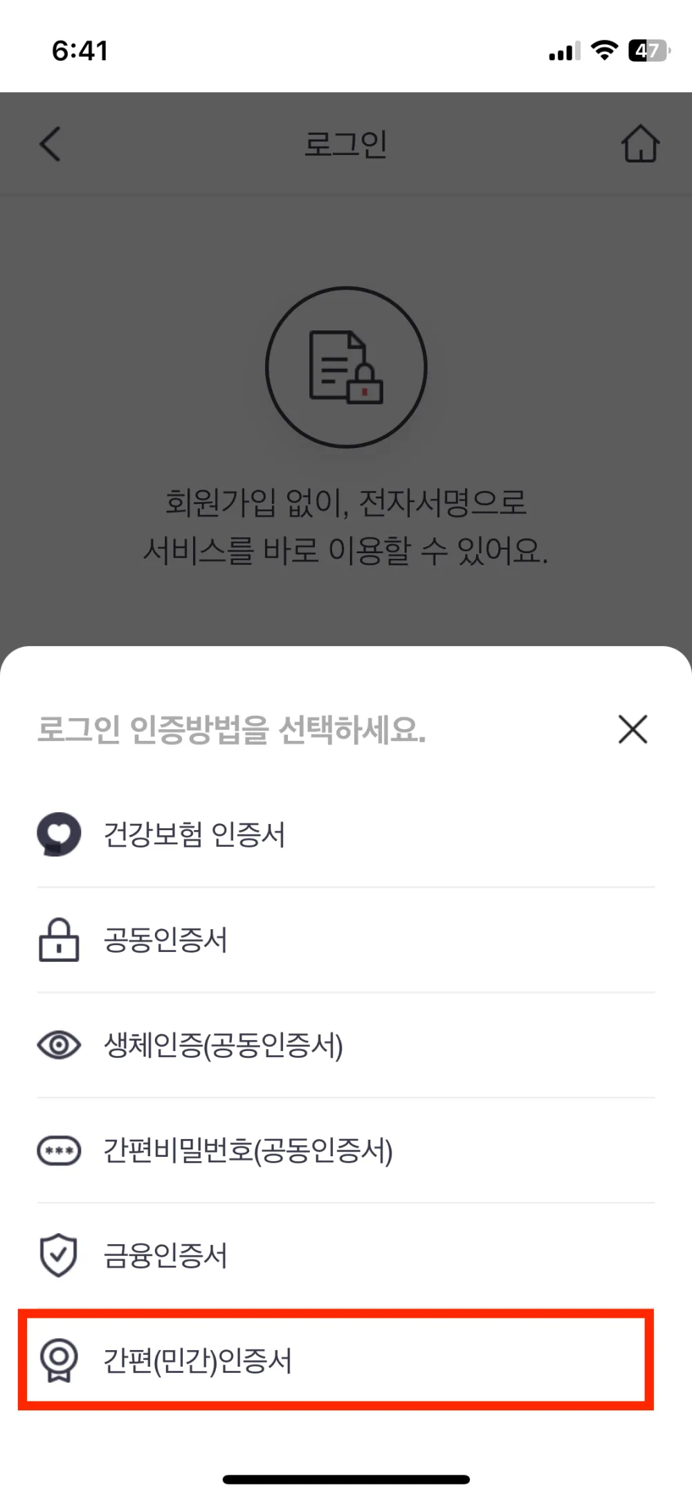 2. 로그인하기 (간편 인증서 로그인 추천)