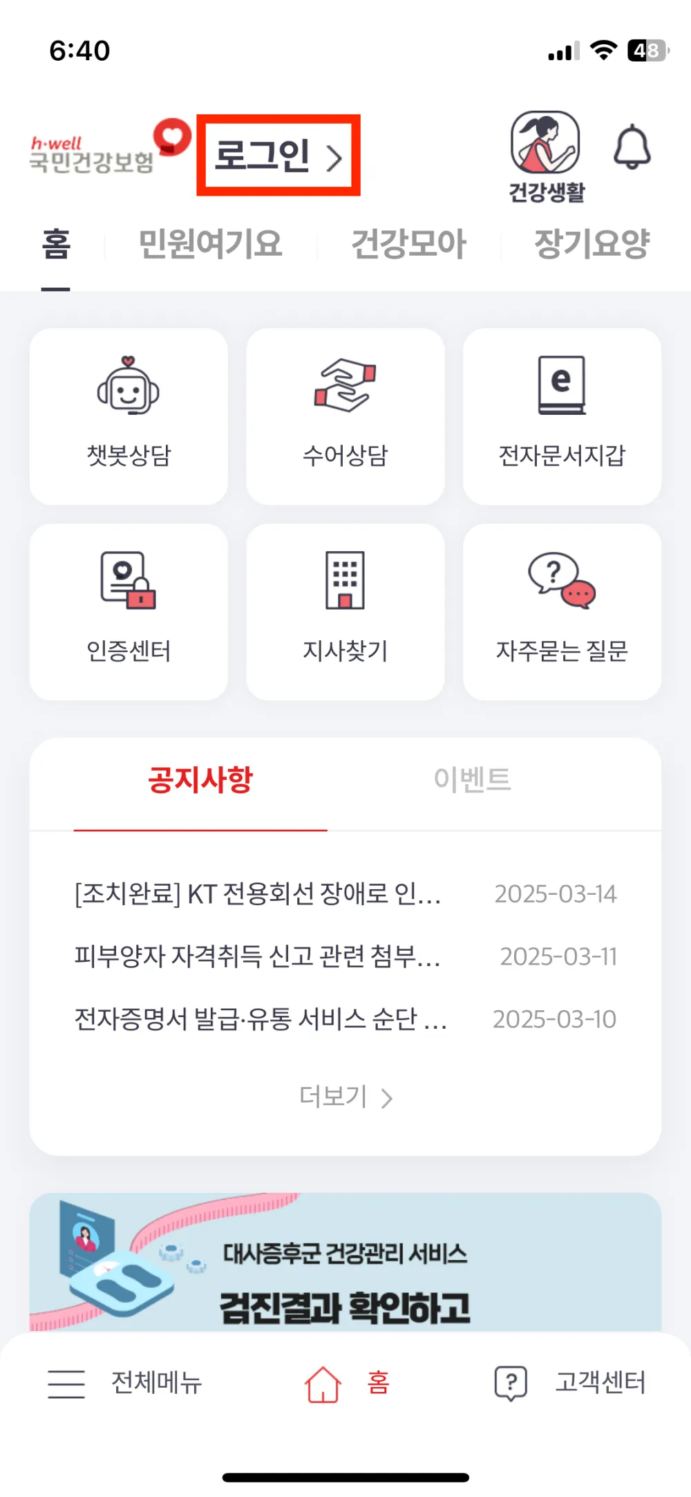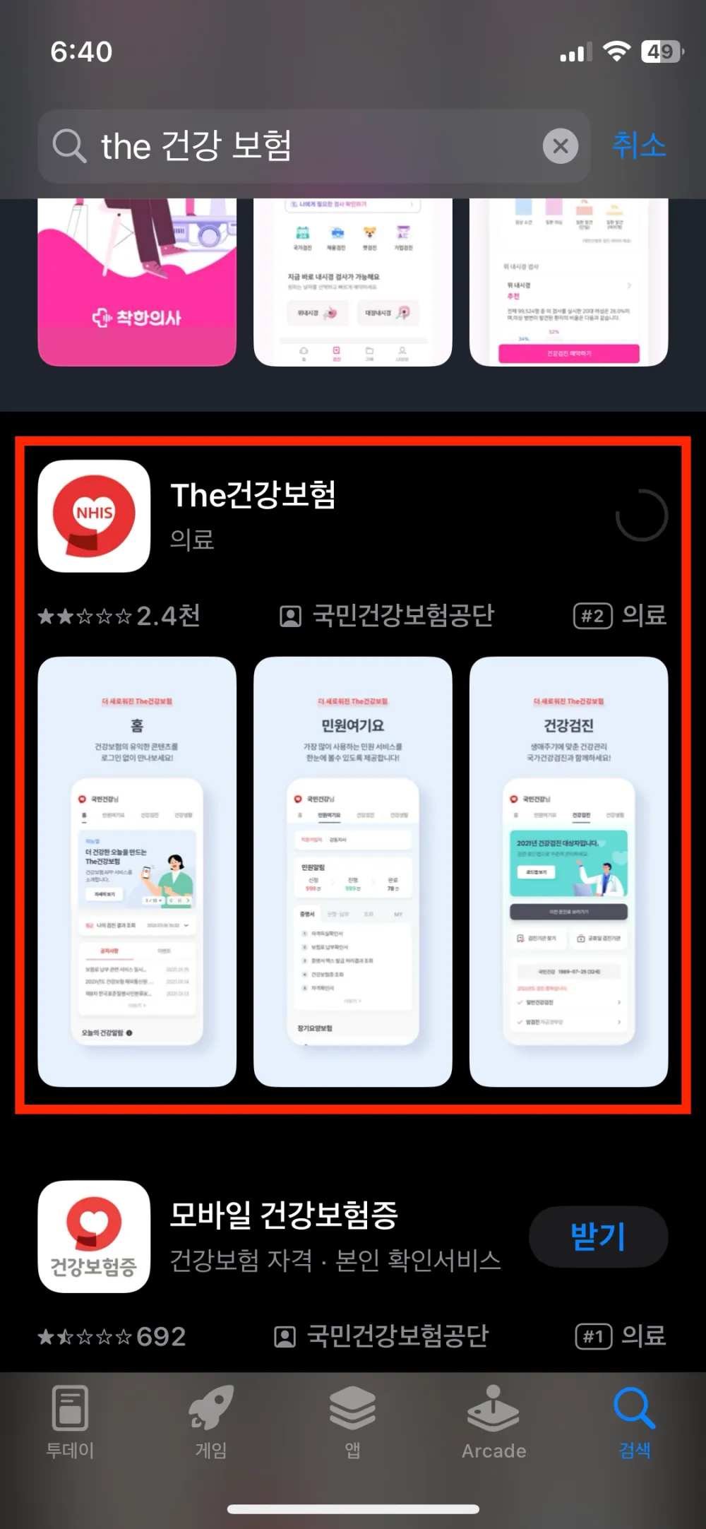 애플 앱스토어나 구글 플레이 어플에서 'The건강보험' 앱을 검색 후 다운로드해 주세요.