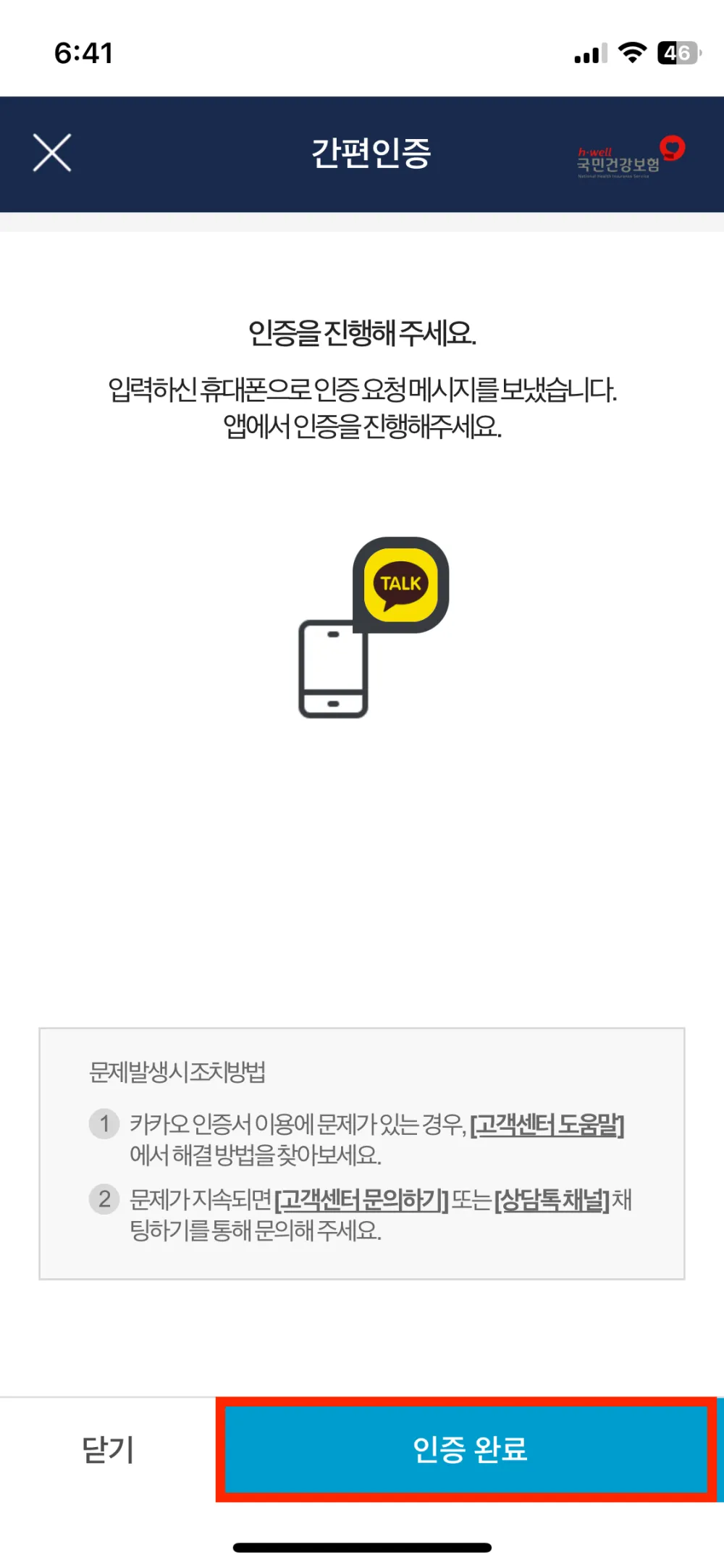 저는 카카오톡을 주로 써서 카카오톡 인증을 예시로 보여드릴게요. 이름, 생년월일, 휴대폰 번호 입력 후 카카오톡을 열어서 인증해 주세요. 이후 다시 어플로 돌아와 '인증 완료' 버튼을 눌러주세요.