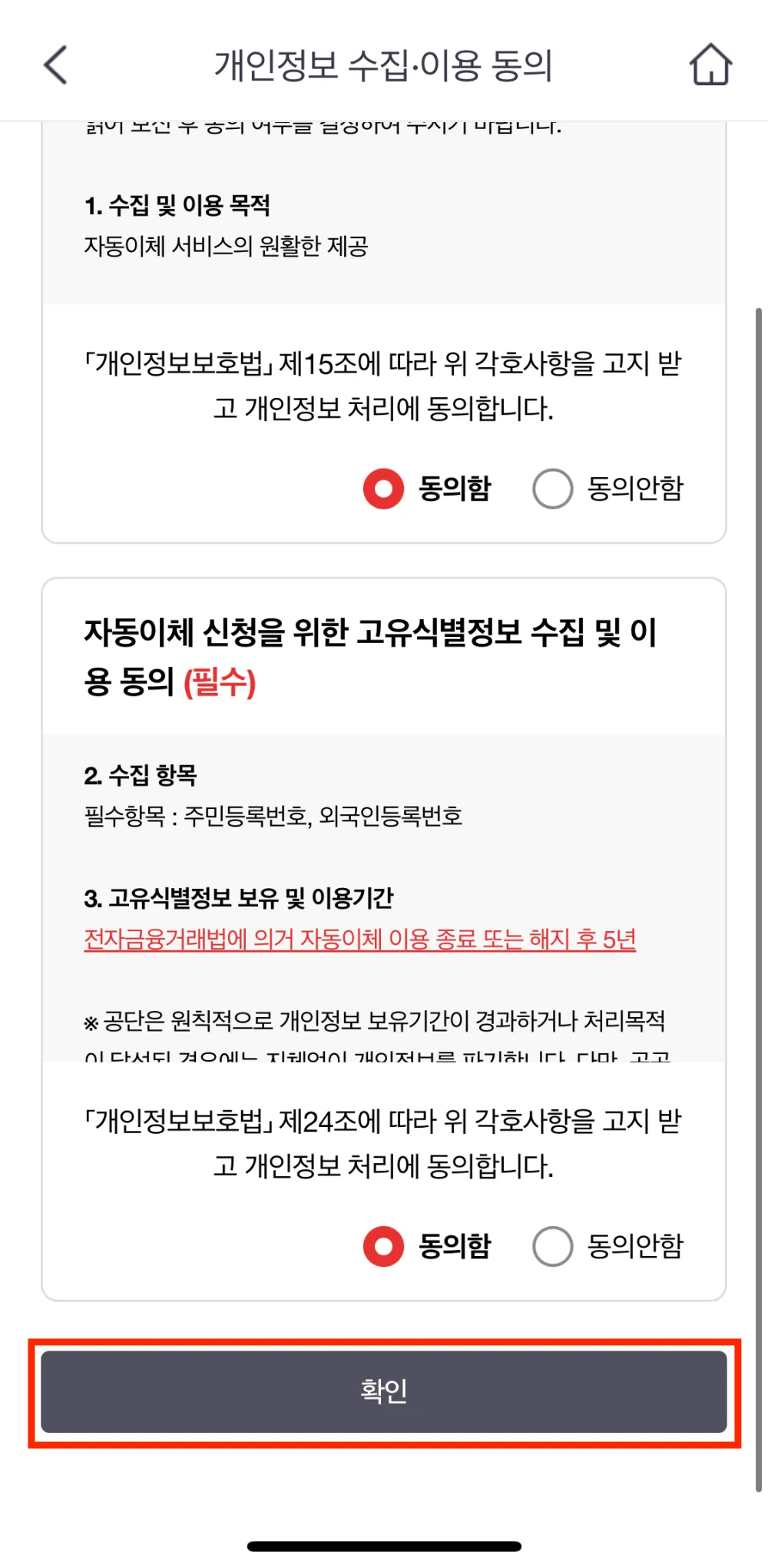 5. 개인정보 수집∙이용 동의 후 [확인] 클릭