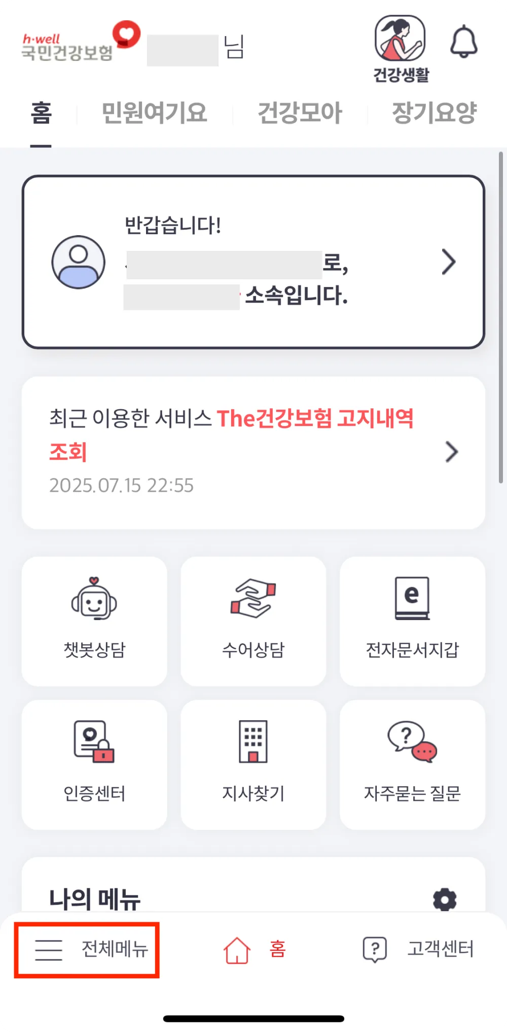 앱스토어에 '건강보험' 검색하면 나오는 The 건강보험 어플을 설치해 주세요.