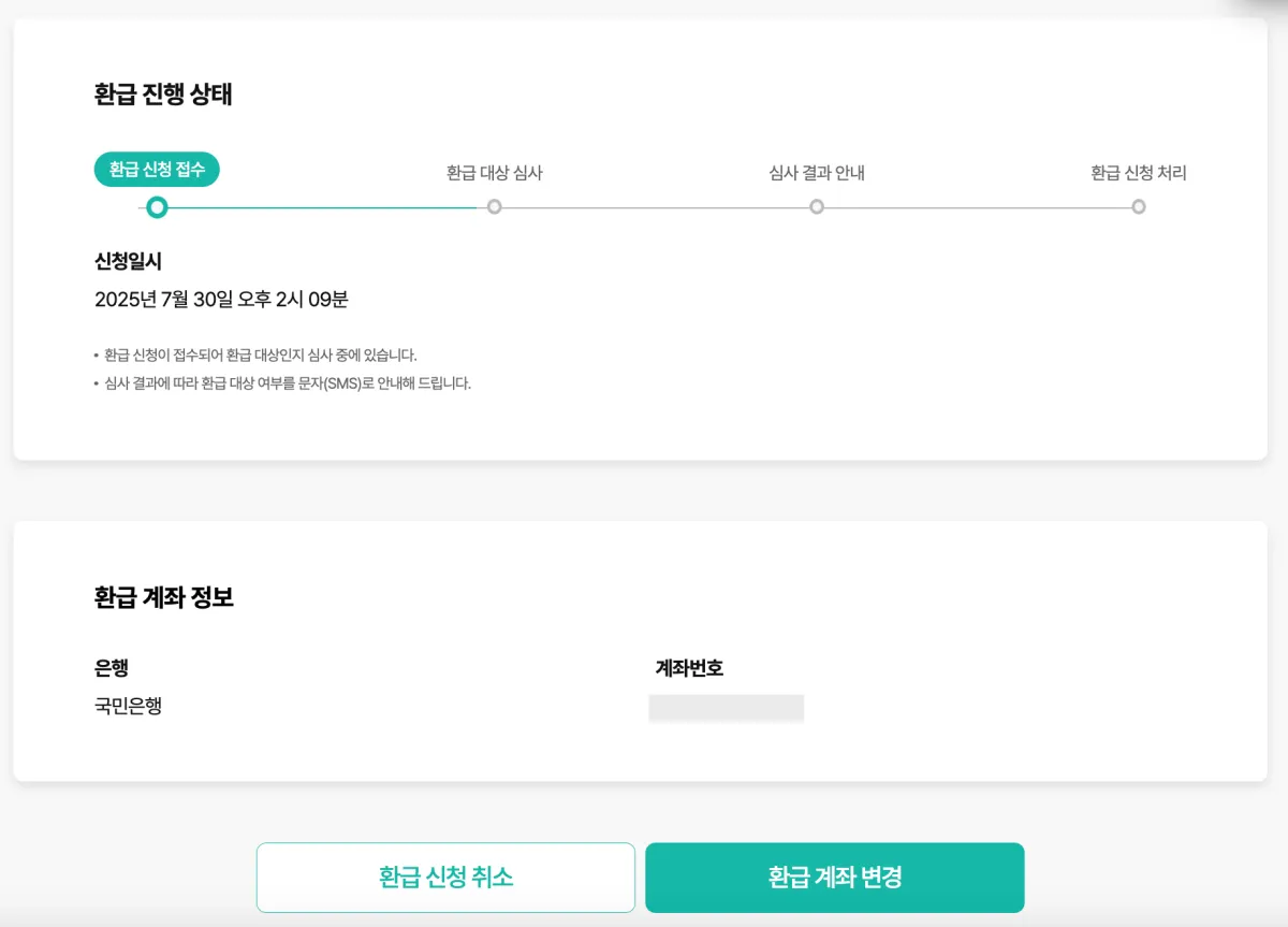 환급 대상자로 선정되었을 때 환급받을 계좌 정보를 입력해 주세요. 이후 [환급 신청]을 클릭해 주세요.