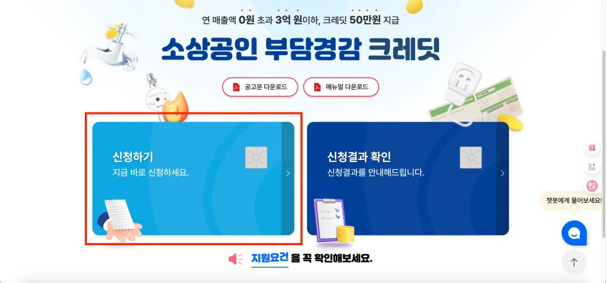 - 지급 금액: 소상공인 1인당 크레딧 50만 원