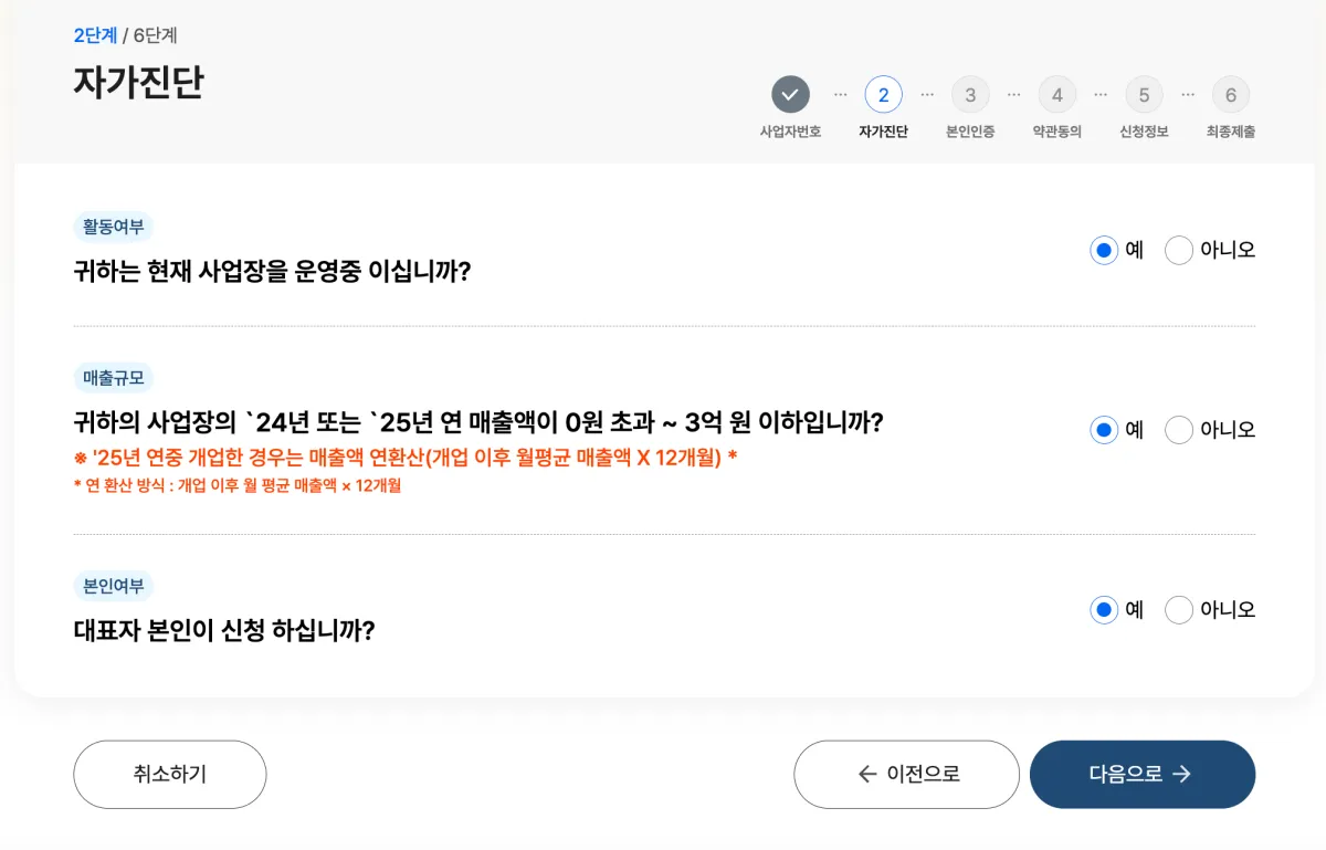 - 매출 기준: 2024년 혹은 2025년 연매출이 3억 원 이하