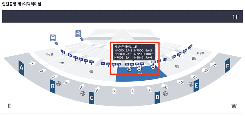 - 인천공항 제1여객터미널 탑승 위치: 1층 8A-2