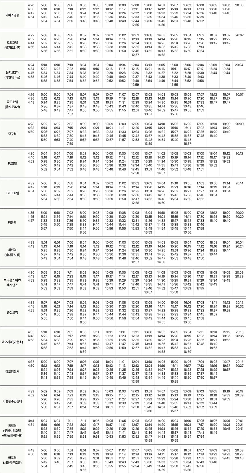 *도로 교통 상황에 따라 버스가 빠르게 혹은 늦게 도착할 수 있으니 항상 미리 도착해 있는 것을 권장드립니다.