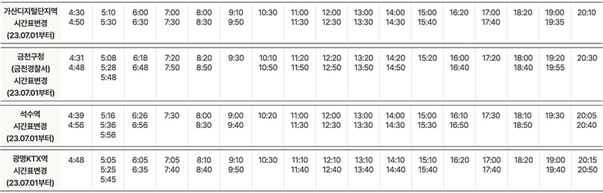 정류장 위치 : 중앙버스전용차로정류장, 석수역 1번 출구
