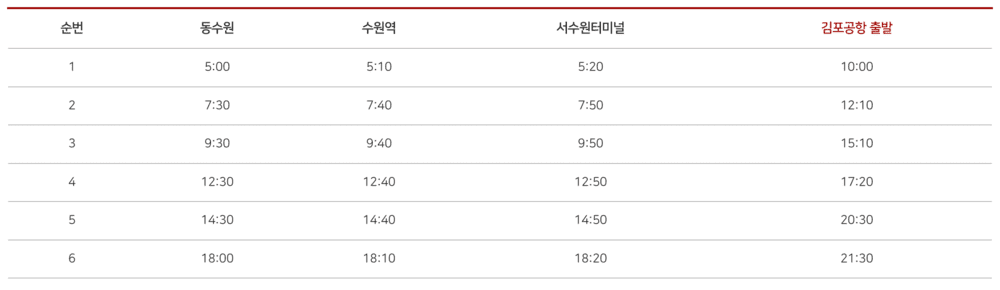 4300-1번 공항버스 동수원 ↔︎ 김포공항 전체 시간표
