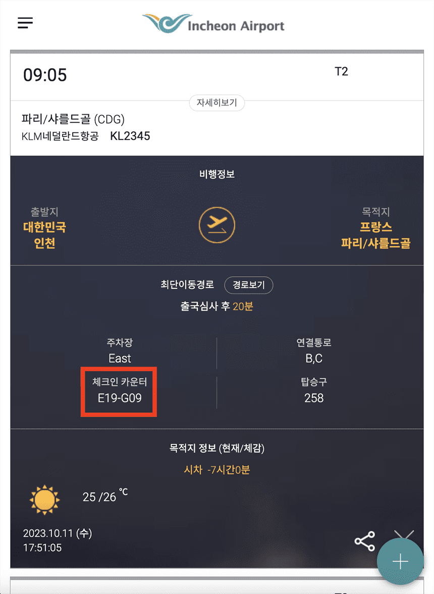 물론 사전에 미리 카운터를 알아볼 수 있는 방법이 있습니다. 인천공항 홈페이지에서 본인의 항공편명 조회를 통해 알아보실 수 있는데요.